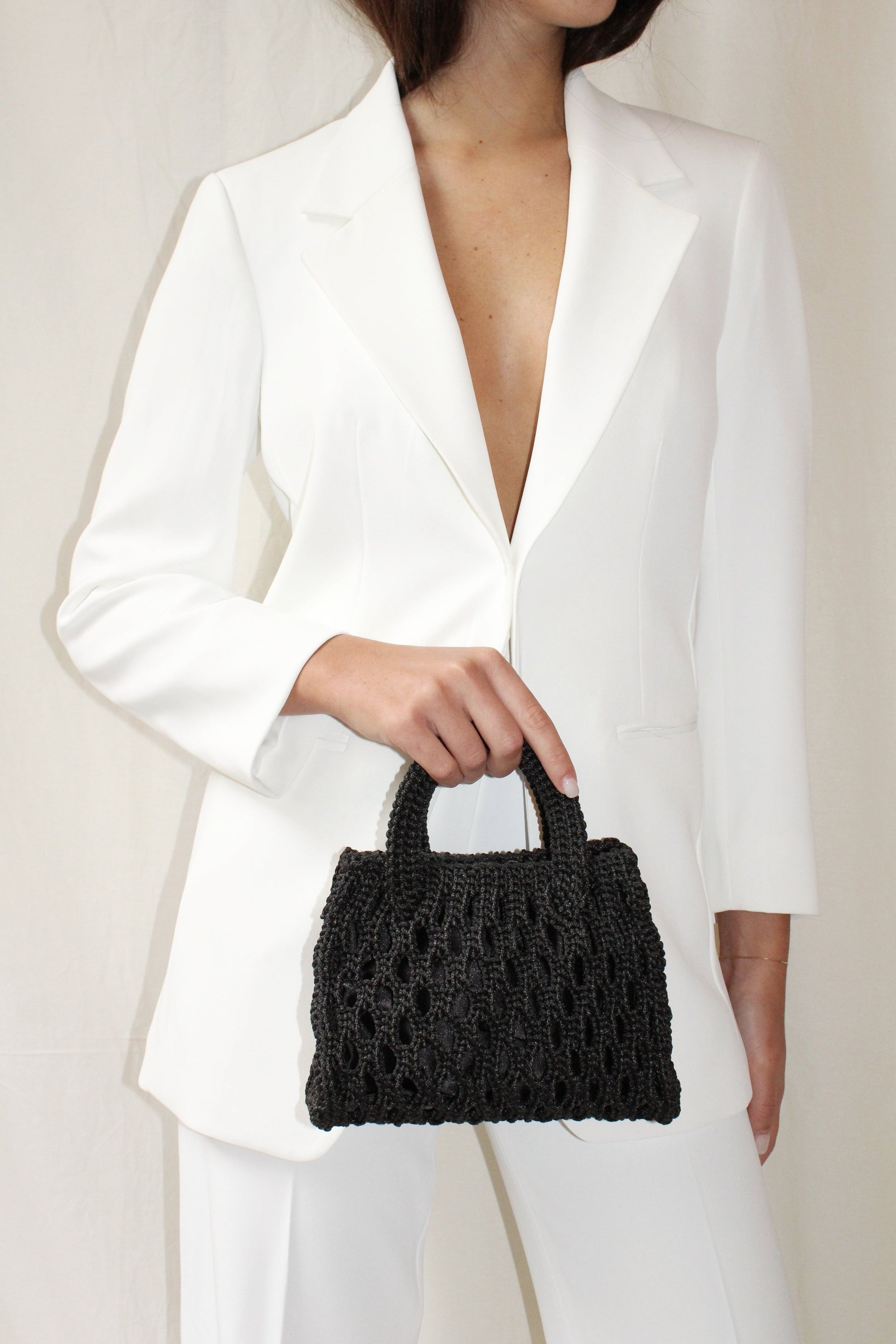 A hand-crocheted bag crafted from premium yarn, with a deep and silky color. The Siena Bag is a small but spacious handbag that adds a fancy accessory to all your outfits, from casual to elegant.